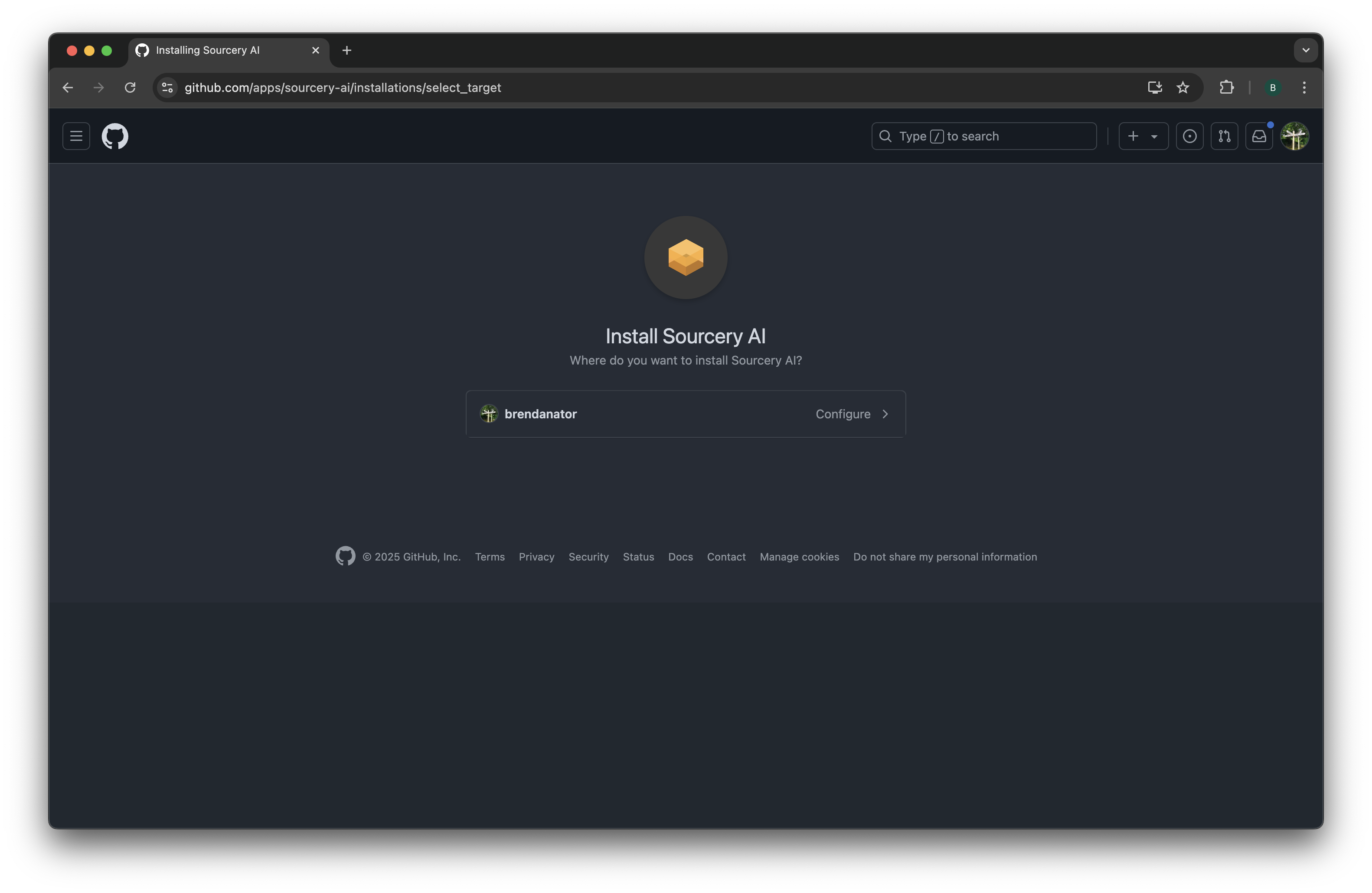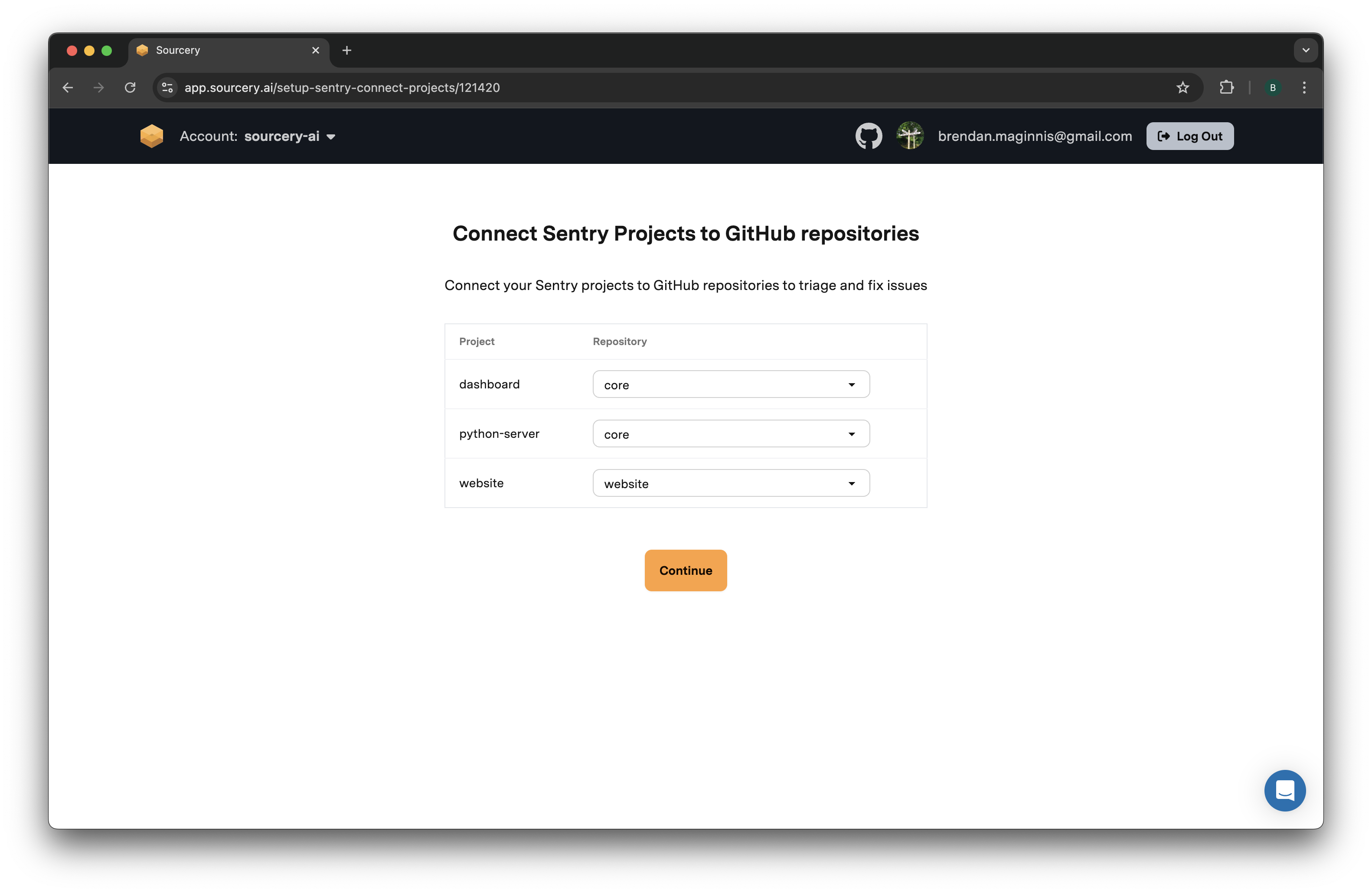 Install the GitHub App for Sourcery and add all the repositories that you have Sentry projects for.