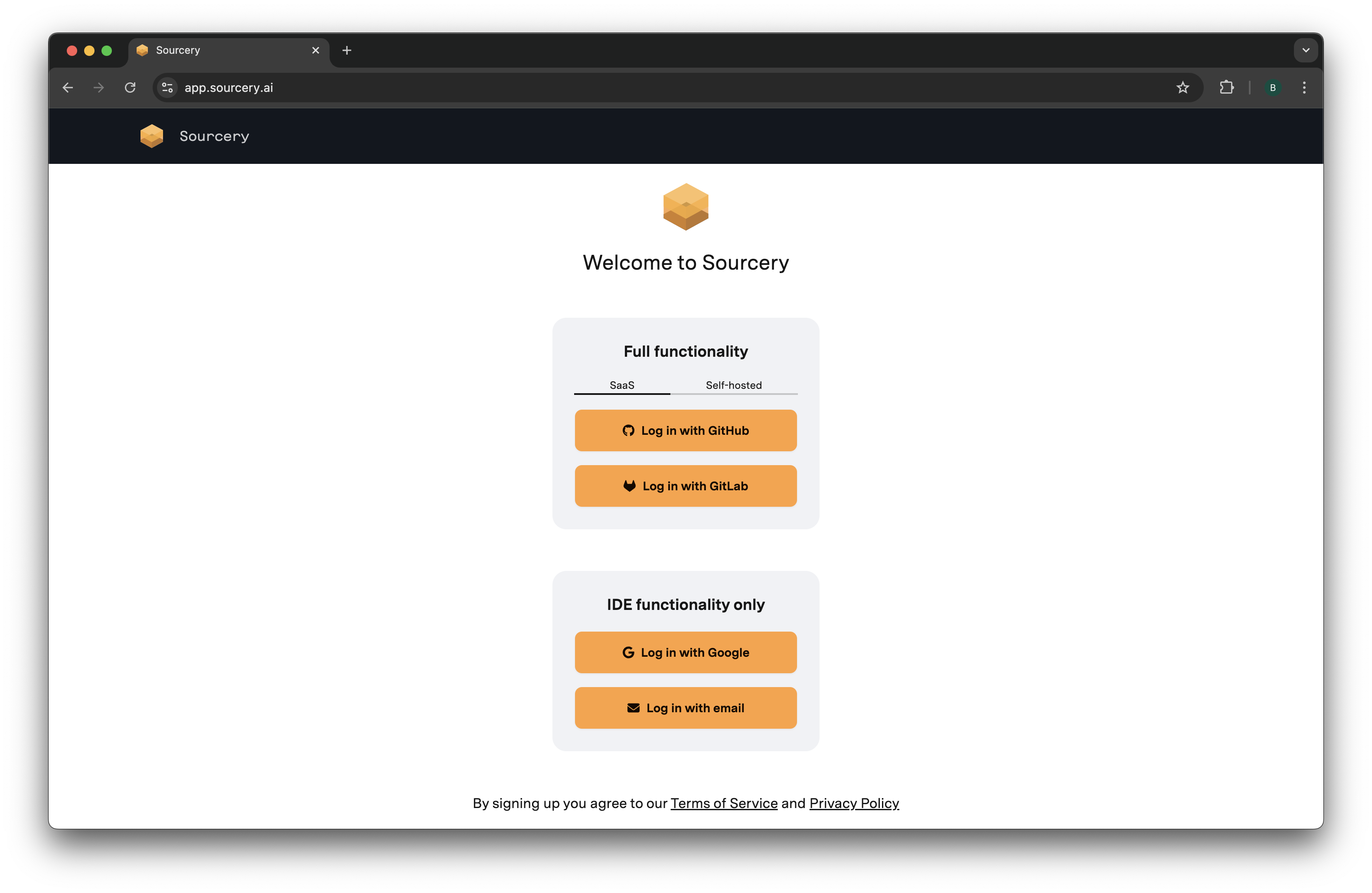 Log in to the Sourcery dashboard